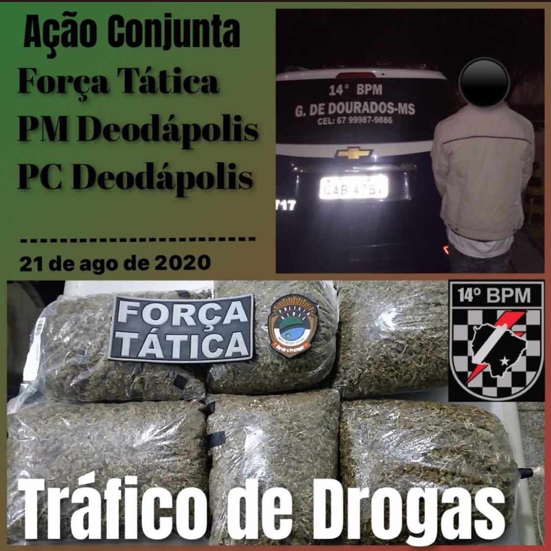EQUIPE DE FORÇA TÁTICA DO 14° BPM PRENDE HOMEM RESIDENTE EM IPEZAL POR TRÁFICO DE DROGAS EM DEODÁPOLIS.