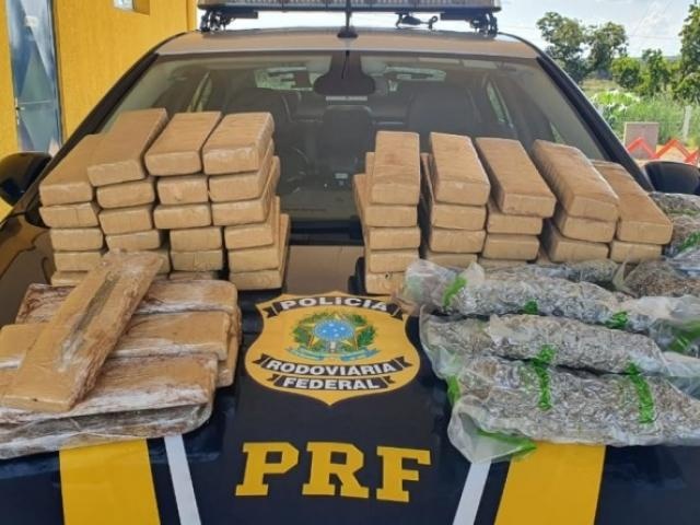 PRF flagra 4 passageiros de ônibus com 72 quilos de maconha e skank na BR-163