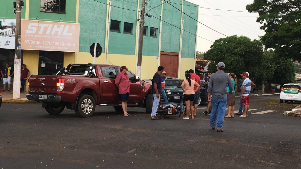 Regiaonline Acidente: Em Glória de Dourados, caminhonete colide em Biz na esquina do Auto Posto Biela.