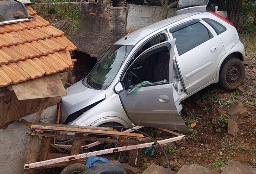 Homem é baleado com veículo em movimento e carro colide com casa