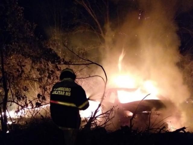 Colisão na BR-262 deixa carro em chamas e motoristas fogem do local