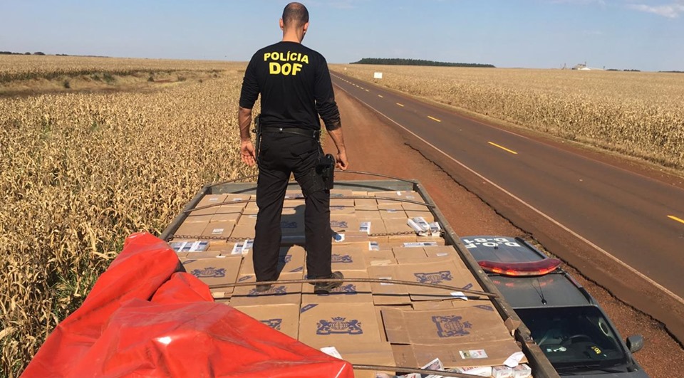 Caminhão carregado com vinte mil pacotes de cigarros contrabandeados foi apreendido pelo DOF na região de Porto Murtinho