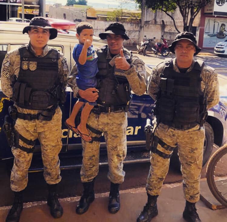Regiaonline Policial: Equipe da Força Tática do 14º BPM pousa para foto com admirador infantil.