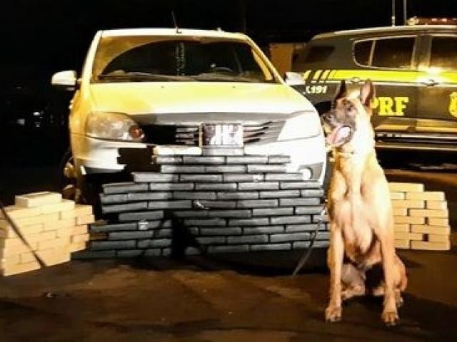 Com cães farejadores, PRF acha 106 kg de cocaína em fundo falso de carro em Sidrolândia