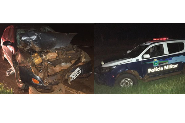 Quatro ficam feridos em forte colisão entre carro e viatura da PM na BR-060
