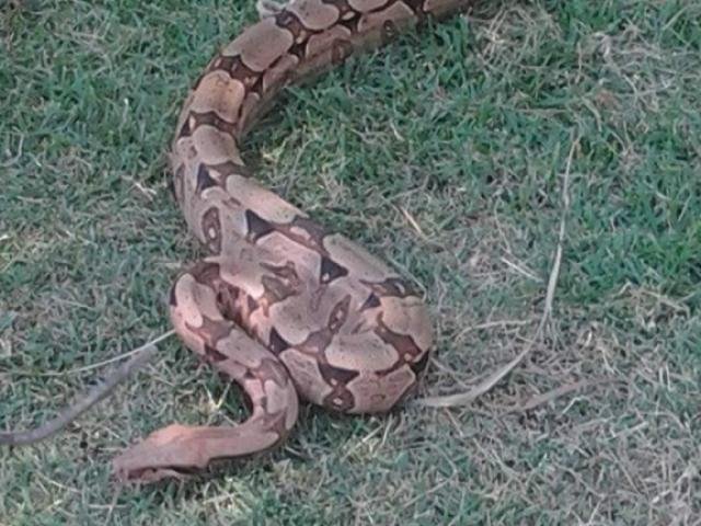 Jiboia é capturada ao comer 4 filhotes de gato em quintal de residência em MS