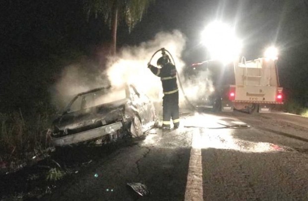 Incêndio em veículo entre Ivinhema e Deodápolis teve ação do Corpo de bombeiros na contenção das chamas.
