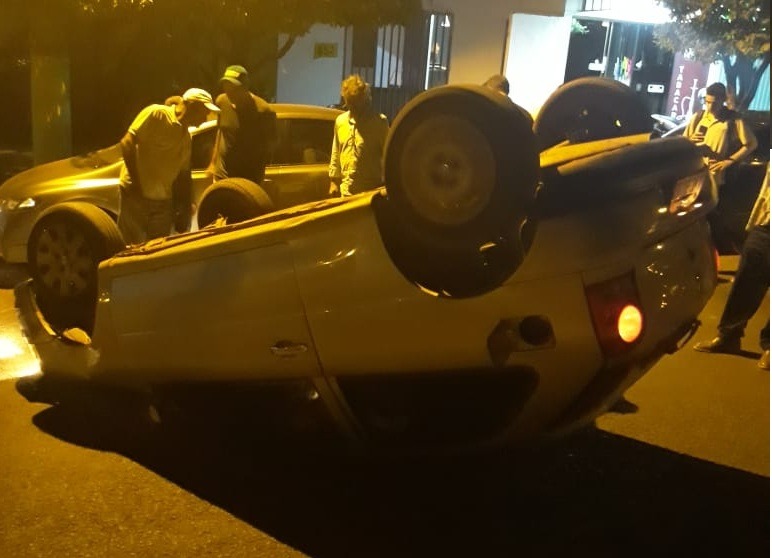 Naviraí – Motorista se distrai em celular, bate em carro parado e capota
