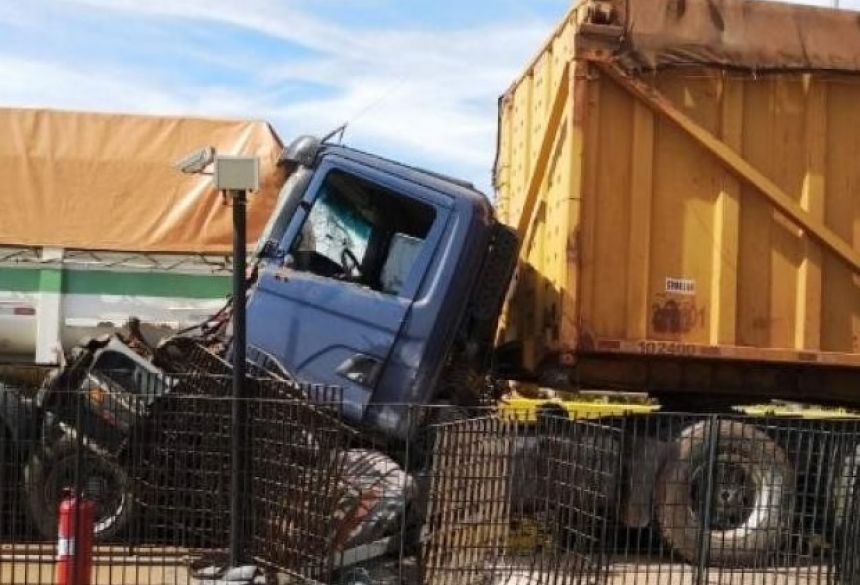 Cancela automática falha e carretas colidem em praça de pedágio