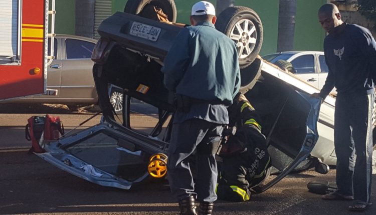 Motorista capota carro quando levava filho para a escola na Capital