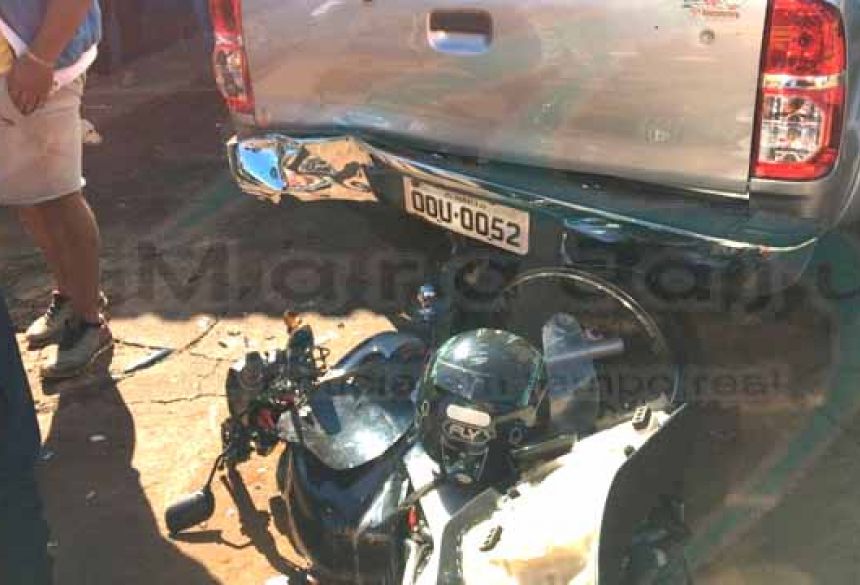 Motociclista faz graça empinando motocicleta e colide com traseira da caminhonete (Video)