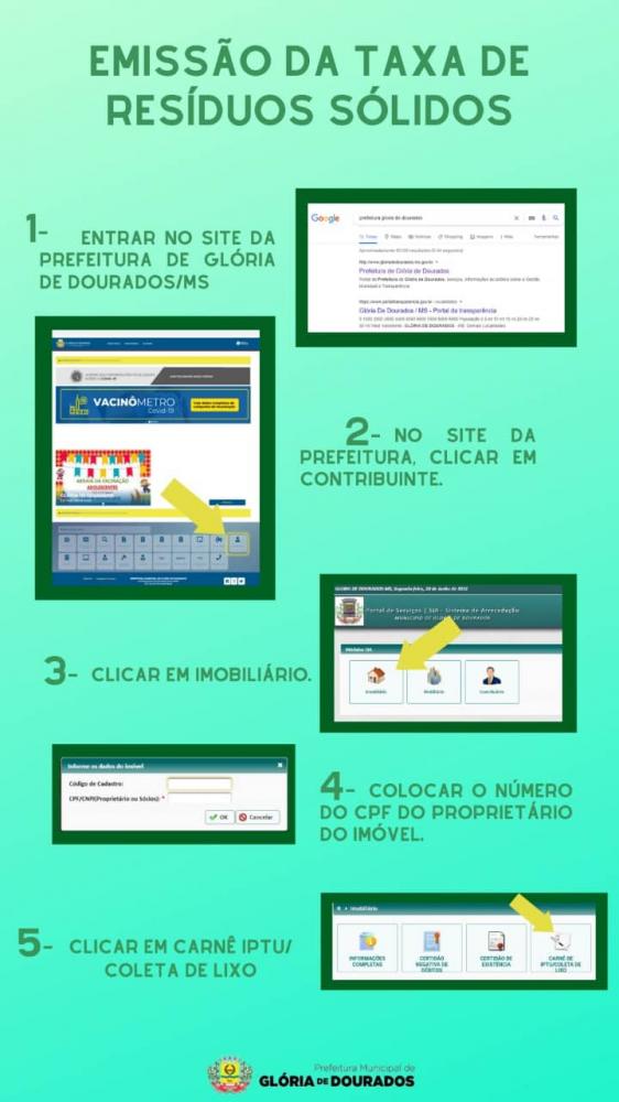 Regiaonline Contribuinte: Prefeitura de Glória de Dourados mostra como fazer a Emissão da Taxa de Resíduos Sólidos.