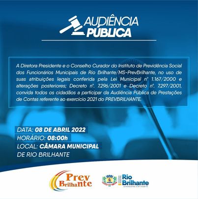 Regiaonline Comunicado: Audiência Pública Prestação de Contas PrevBrilhante será nesta sexta-feira.
