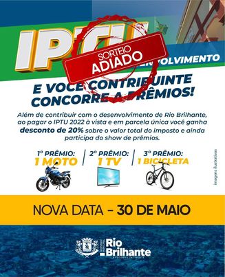 Regiaonline Informa: Em Rio Brilhante, Sorteio de Prêmios do IPTU é adiado para maio.