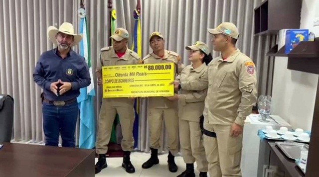 Prefeito entrega cheque no valor 80 mil reais aos bombeiros de Ivinhema