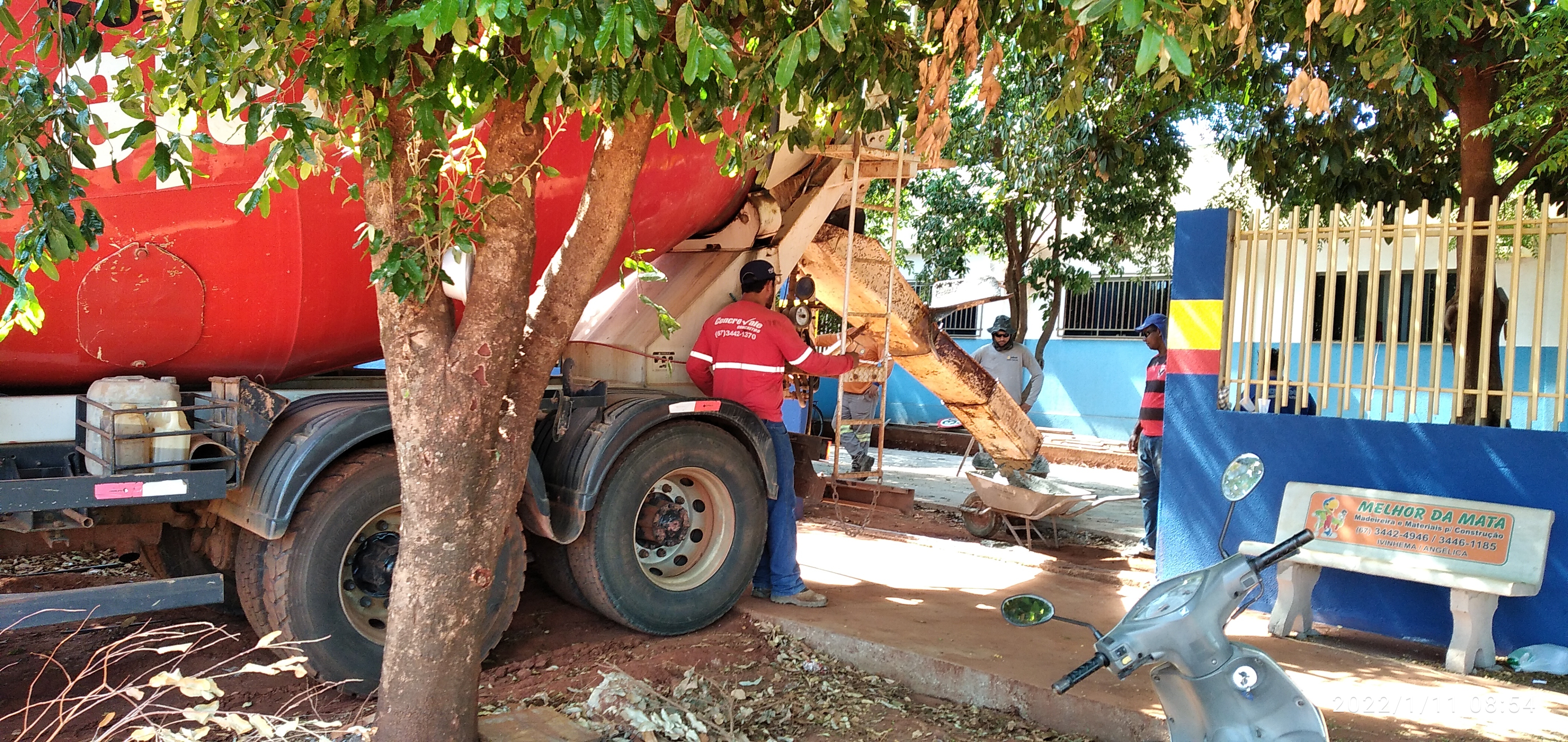 Secretaria de Obras de Ivinhema realiza concretagem em calçamento da escola Sideney Carlos Costa