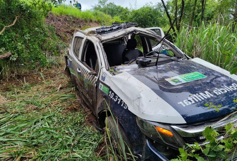 Policial militar fica ferido após ser jogado para fora de viatura em capotamento