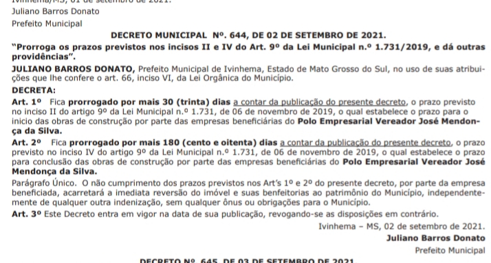 Prefeito de Ivinhema prorroga prazo para construção em polo industrial