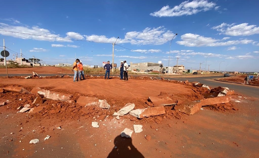 Secretaria de obras realiza reconstrução de rotatória em Ivinhema
