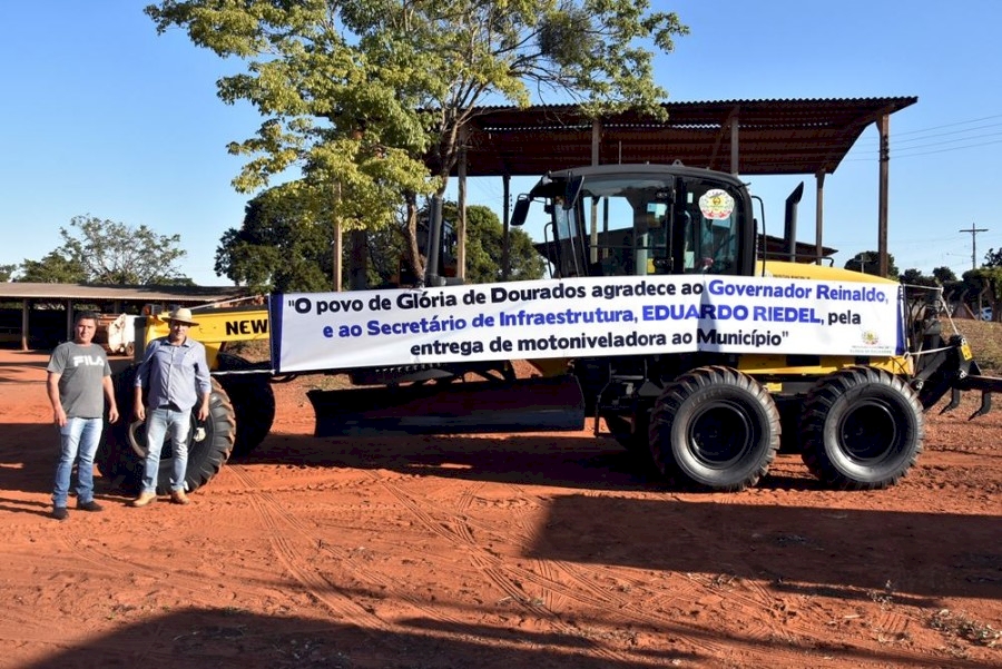 Prefeitura de Glória de Dourados recebe Motoniveladora 0 KM do Governo do MS.