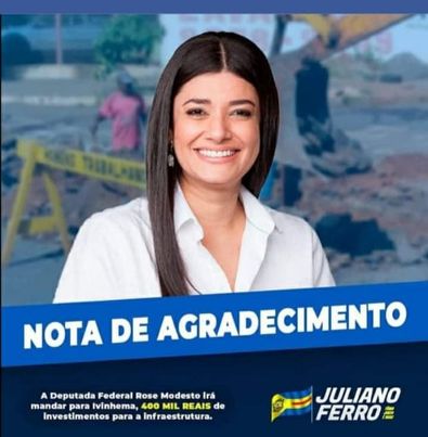 Regiaonline Nota de Agradecimento: Em Ivinhema, Prefeito Juliano Ferro agradece Deputada Federal Rose Modesto por investimentos na Infraestrutura.
