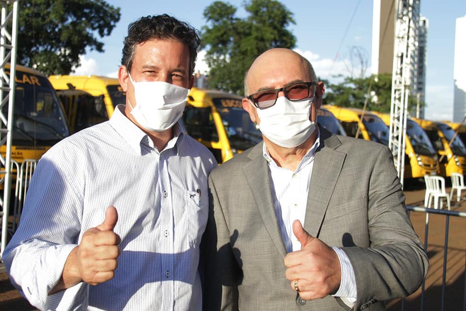 Em solenidade com Ministro da Educação e Governador, Prefeito Aristeu recebe dois ônibus para transporte escolar, de verba de bancada federal.