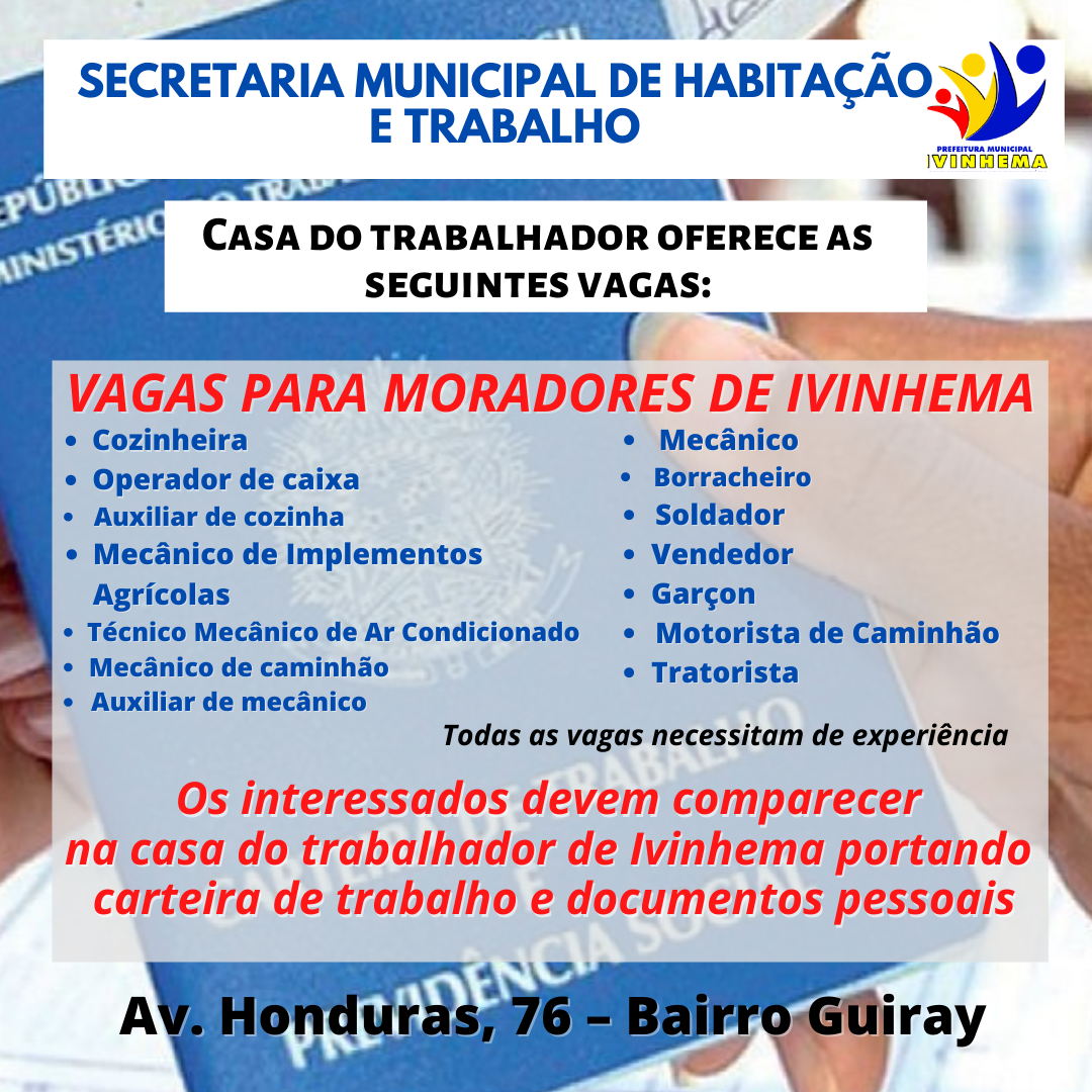 IVINHEMA: OPORTUNIDADE DE TRABALHO