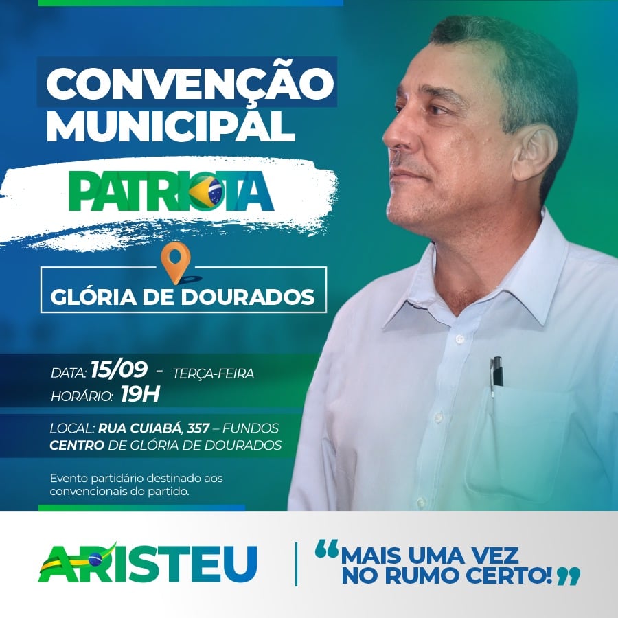 Regiaonline Política: Convenção Municipal do Patriota acontece na Terça-feira, em Glória de Dourados.