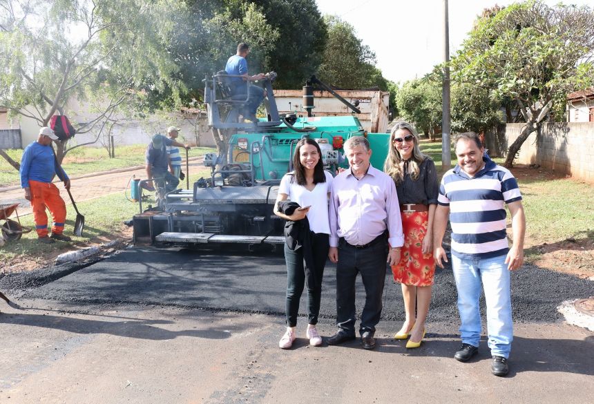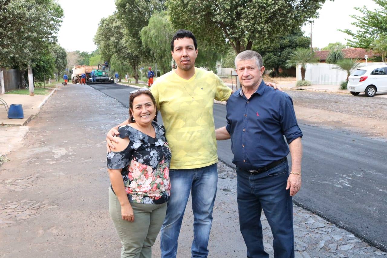 Asfalto chega em Rua que era de pedras irregulares, moradores agradecem e prefeito vistoria em Jateí