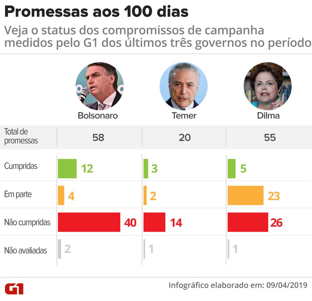 Em 100 dias, Bolsonaro cumpre mais promessas que Dilma e Temer no mesmo período