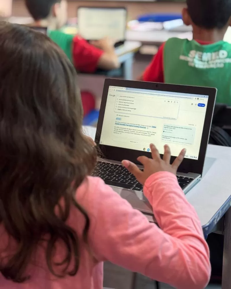 Alunos da Escola Cícero Reinaldo utilizam Chromebooks em aula de Geografia