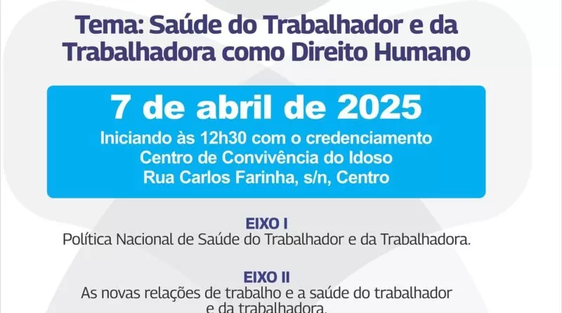 1ª Conferência Municipal de Saúde do Trabalhador e da Trabalhadora será realizada em 4 de abril