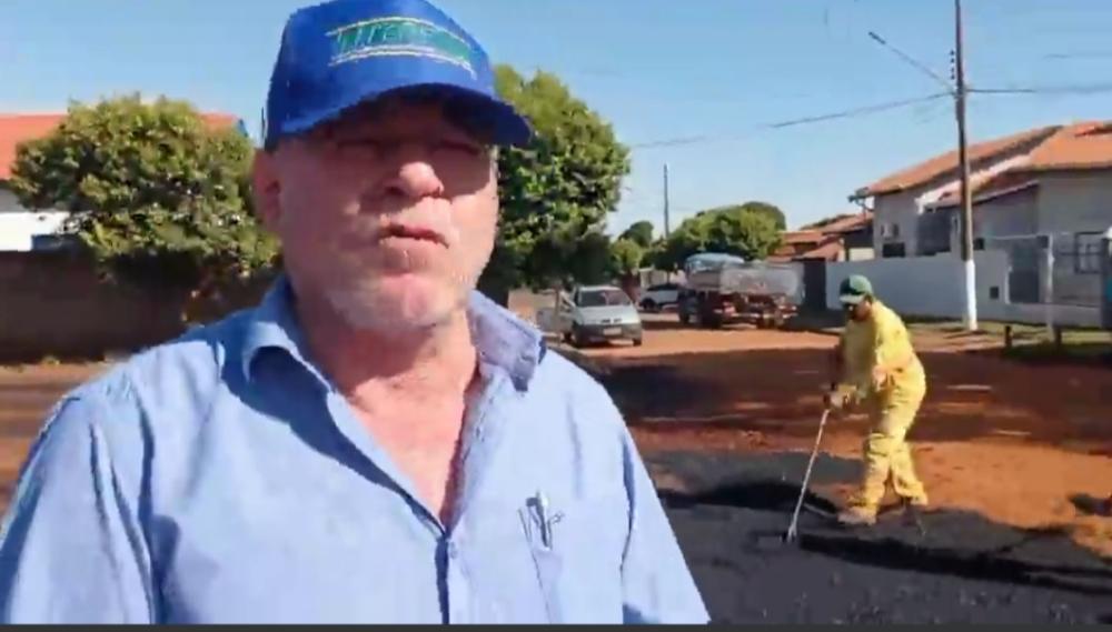 Regiaoonline Poder Executivo Municipal: Prefeito de Deodápolis Valdir Sartor acompanha Obra de Pavimentação Asfáltica próximo à Polícia Militar.