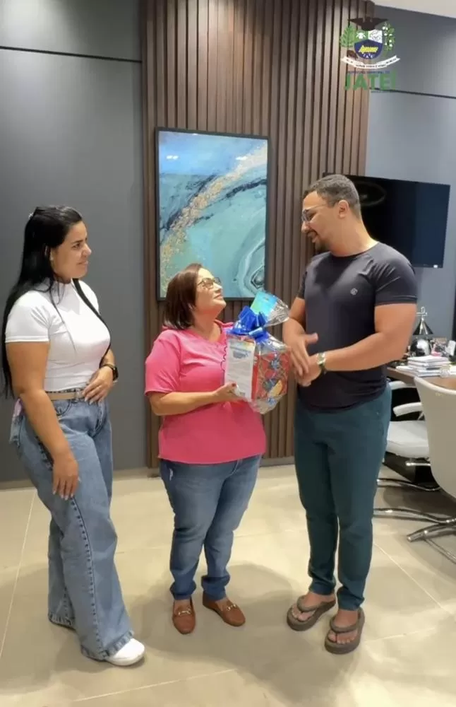 Professores da Escola Joaquim Viana entregam homenagem à prefeita Cileide Cabral antes de premiação estadual