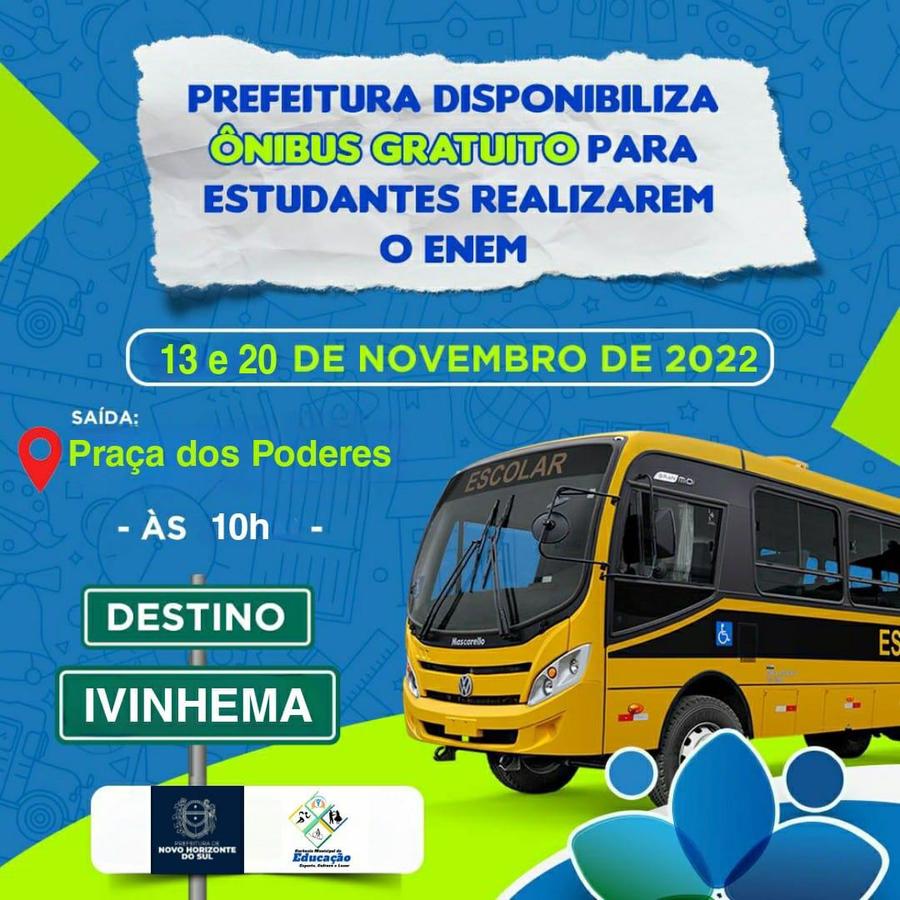 PREFEITURA DE NOVO HORIZONTE DO SUL DISPONIBILIZA ÔNIBUS PARA INSCRITOS DA PROVA DO ENEM 2022