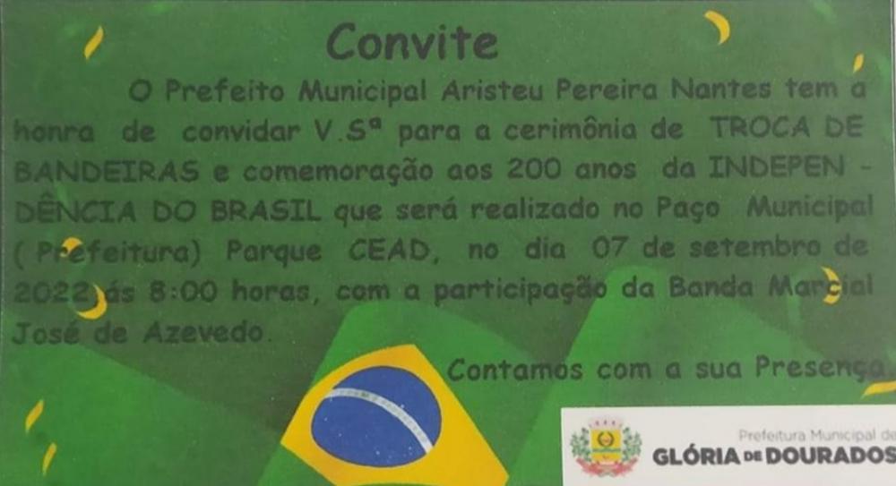 Regiaonline Convite: Em Glória de Dourados, Prefeito Aristeu Convida População para Cerimônia de Troca de Bandeiras.