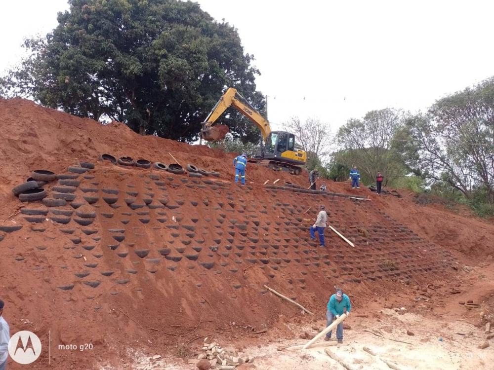 Regiaonline Infraestrutura e Obras: Defesa Civil de Glória de Dourados e Secretaria Municipal de Infraestrutura constroem barreira ecológica na Avenida Ramez Tebet.