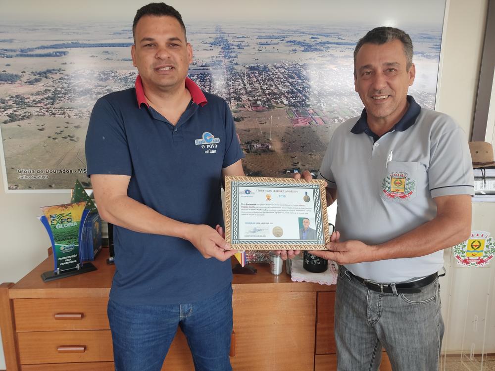 Regiaonline Reconhecimento: Em Glória de Dourados, Prefeito Aristeu recebe Certificado de Honra ao Mérito do Site Regiaonline.
