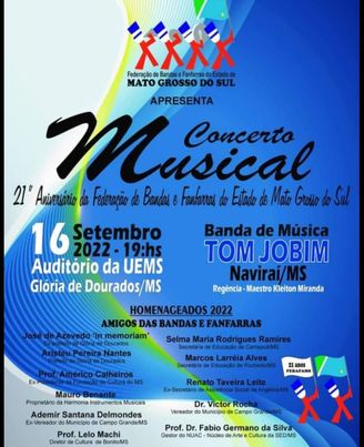 Regiaonline Comemorativo: Banda de Naviraí realizará Concerto Musical em Homenagem ao 21º Aniversário da FEBAFAMS.