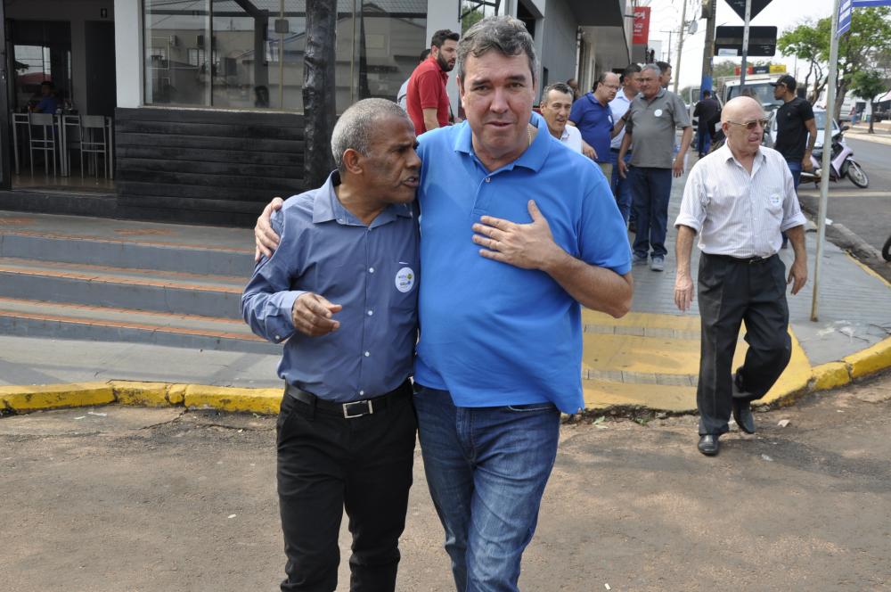 Regiaonline Política: Em Glória de Dourados, Candidato a Deputado Estadual Reginaldo Costa Borges participa de Caminhada e Adesivagem ao lado de Candidato ao Governo Eduardo Riedel.
