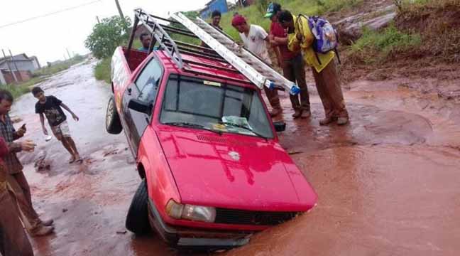 Carro cai em buraco na região do Bairro Triguinã em Ivinhema