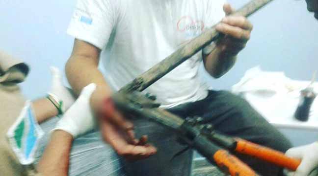 Gancho atravessa mão de vigilante que tentava espantar pássaros