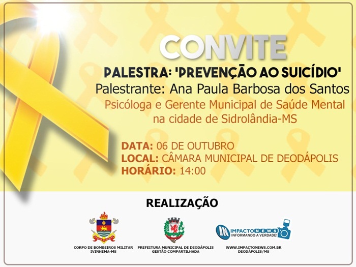 Palestra 'Prevenção ao suicídio' será realizada nesta sexta no plenário da Câmara de Deodápolis