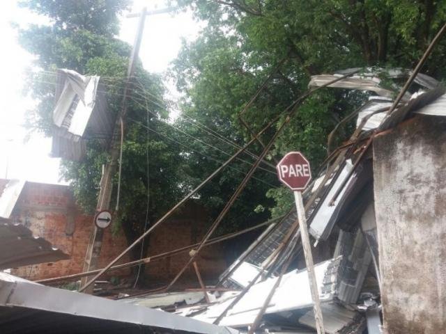 Temporal de meia hora derruba telhado, que atinge casas e poste em Campo Grande