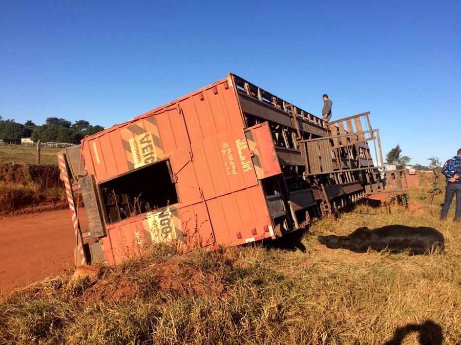 Carreta carregada com 81 cabeças de gado tomba em Nova Andradina