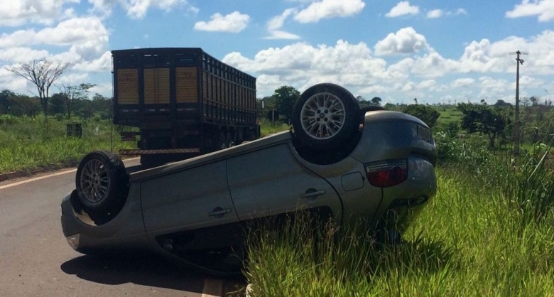 Com placas de DEODÁPOLIS, jovem perde controle e capota carro entre Batayporã e Anaurilândia
