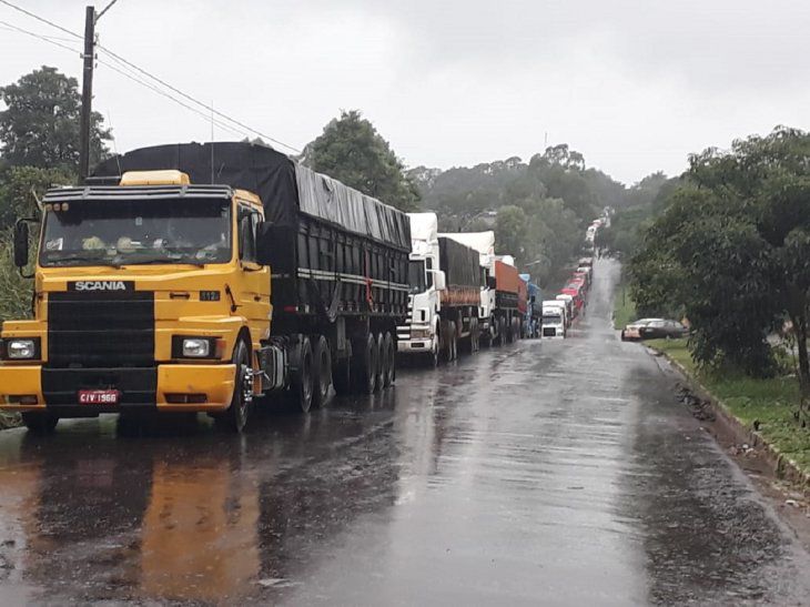Com baixo nível de água no Rio Paraná, mais de 600 caminhões ‘encalham’ na fronteira com MS