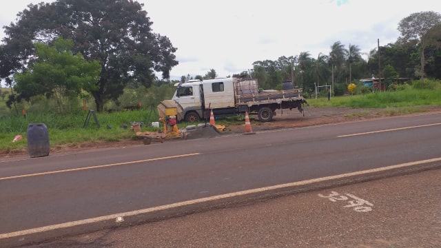 Regiaonline Infraestrutura: Em Glória de Dourados, DNIT efetua reparos no acostamento próximo à 5º linha.