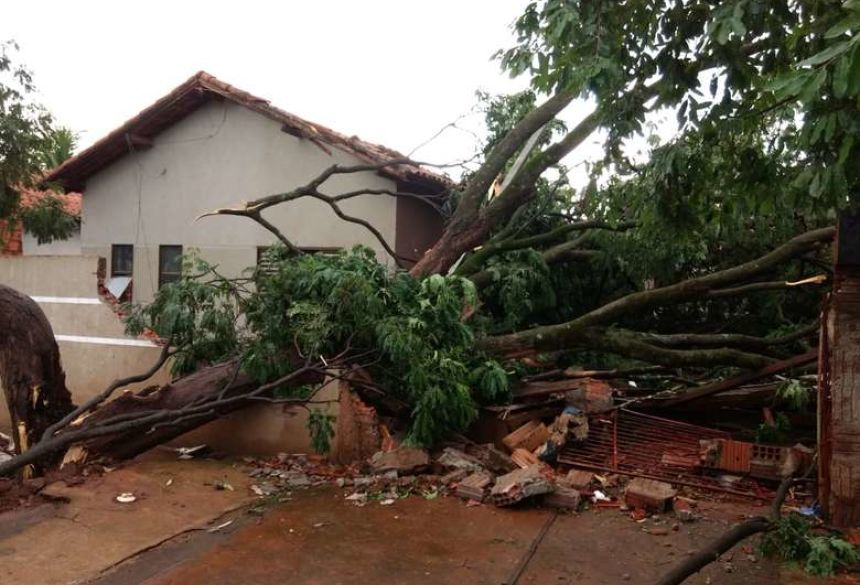 Vendaval derruba árvore, destelha casas e deixa uma pessoa ferida em Dourados