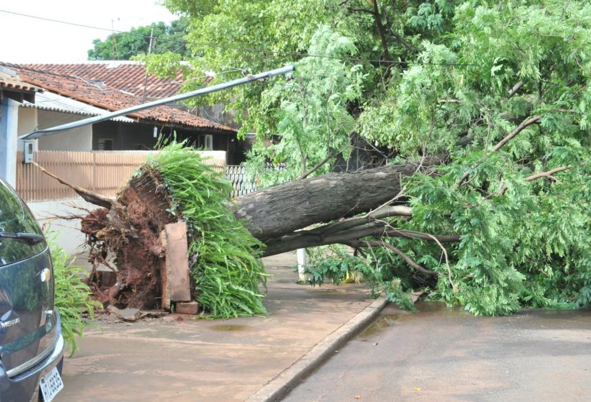 Vendaval derruba dezenas de árvores e previsão indica mais chuva em MS
